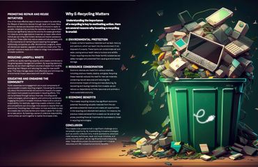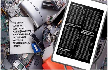 This editorial on e-waste aims to raise awareness and evoke emotion, highlighting the environmental impact of electronic waste. I designed a new logo that symbolizes the urgency of the issue, pairing it with carefully selected images that stir a sense of concern and responsibility. The clean, legible font used throughout ensures that the message is accessible, allowing the viewer to connect emotionally with the content while maintaining clarity and focus.