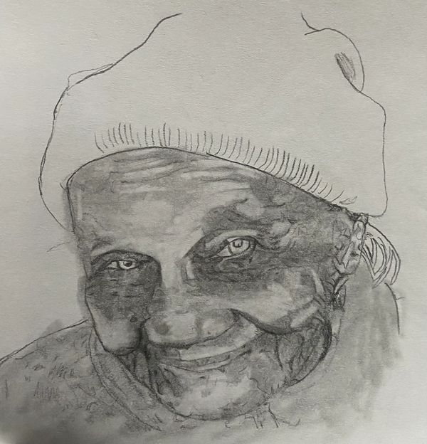 This pencil drawing portrays an older woman, her face marked with the natural lines and wrinkles that come with age. Her expression carries a quiet tiredness, a reflection of life lived and time passed. I focused on how the skin sags and shifts with age, aiming to capture the beauty, depth, and honesty in the aging process.